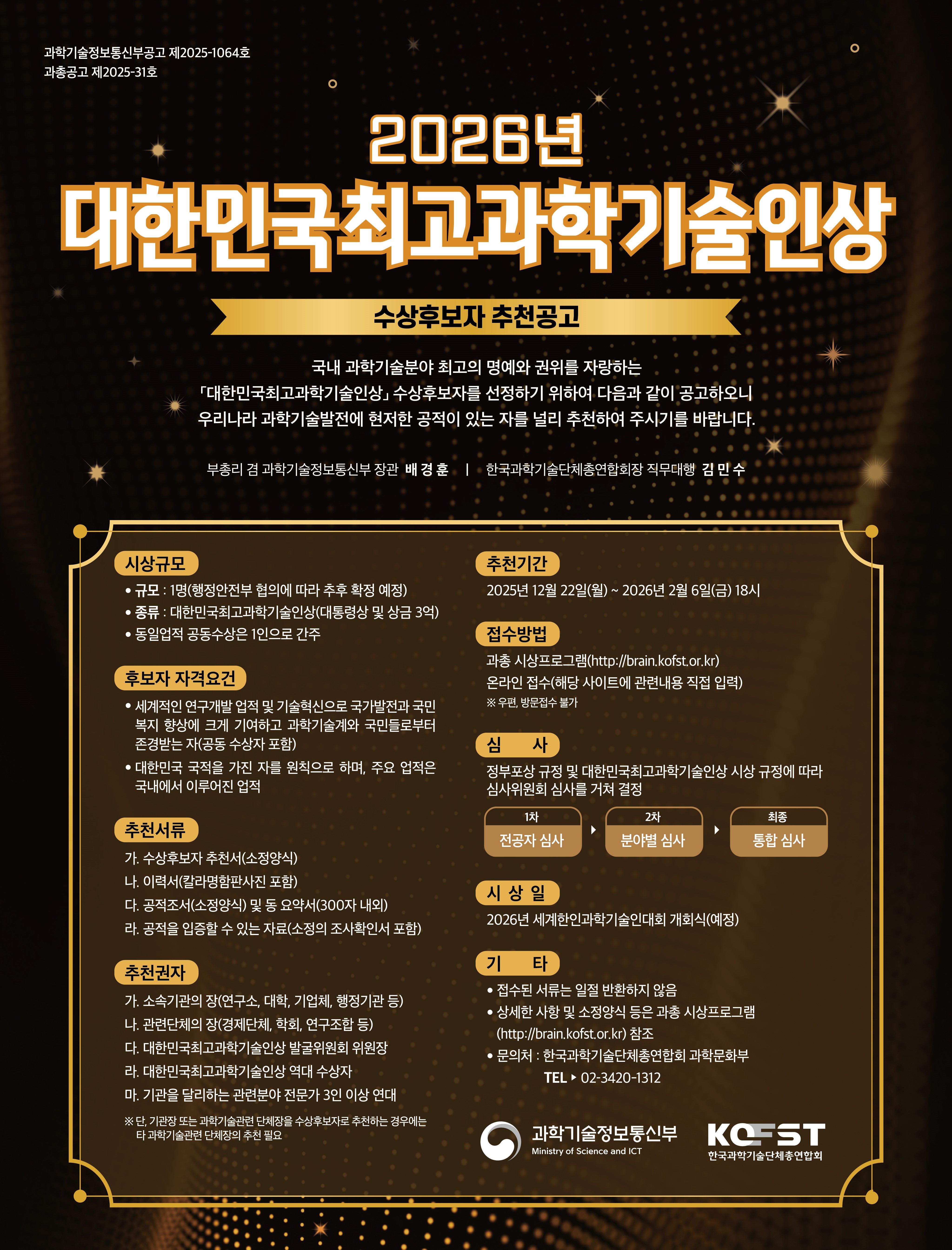 [과총] 2026년 『대한민국최고과학기술인상』 수상후보자 추천 공고